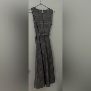 Calvin Klein Gray Fit + Flare ‘Glen’ Plaid Belted Midi Dress, Size 4
