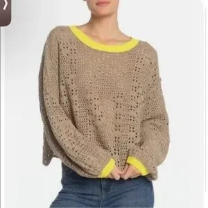 ♥️ Item : Home Run crochet 100% cotton crop sweater. Brown with yellow lining.