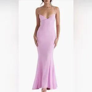 House of CB Loren Georgette Mermaid Gown NWT Large with Plus Cup