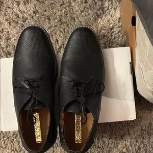 Worn twice men’s black dress shoes with laces. Size 8.