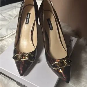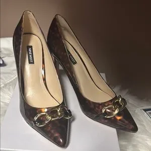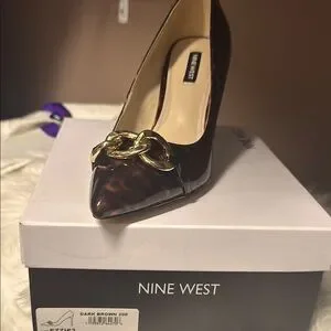 Nine West Brown Patent Leather Heels with Gold Accent. Brand New Never Worn
