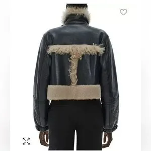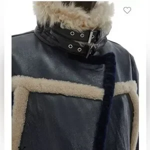 Helmut Lang Shearling Bomber Jacket. Sheep leather with fur trim
