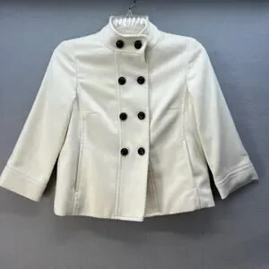Banana Republic Pea Coat Women's Size S White 48% Wool Classic Elegant Preppy