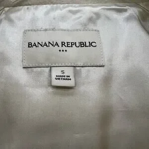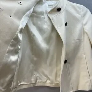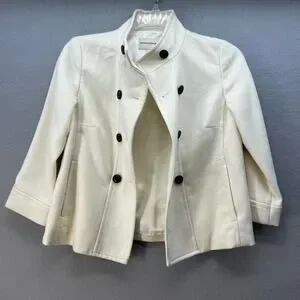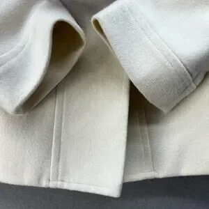 Banana Republic Women's Pea Coat. In the color white. Tagged size small. This Banana Republic pea coat is 48% wool and features a long cuffed sleeve, Side pockets, double breasted button design, high collar and is lined. In preowned condition with minimal signs of wear.
