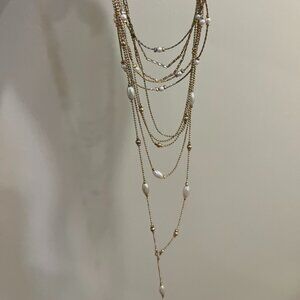 Gold necklace from Anthro with fun pearl accents. Looks like multiple necklaces but it's only one clasp. Great condition.