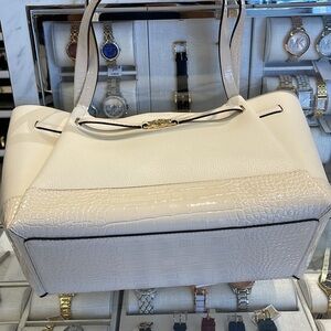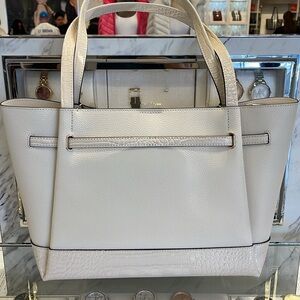 MICHAEL KORS Reed Large Leather Belted Satchel Shoulder Tote Handbag Lt Cream