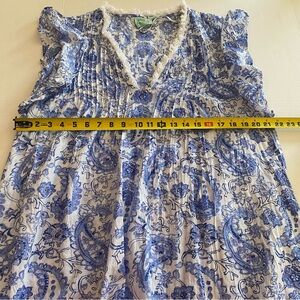 TRUE DESTINATIONS Flutter Sleeve M Dress Floral Paisley Cruise Pool Coverup Blue