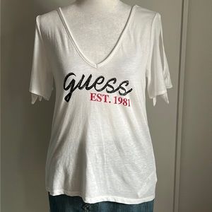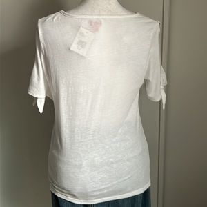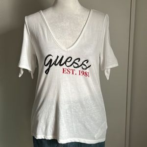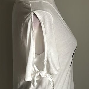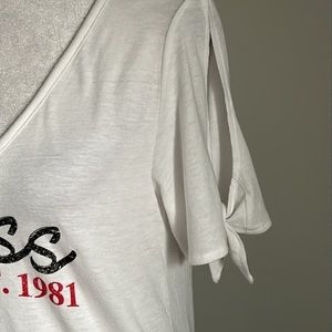New with tag - New GUESS Signature Logo White Split Tie Sleeve Cold Shoulder Tee Shirt