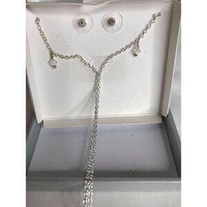 clear aurora borelis type crystals on silver chain with silver pendant and silver balls on earring