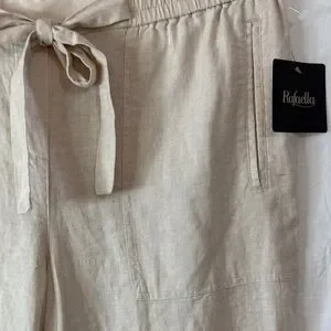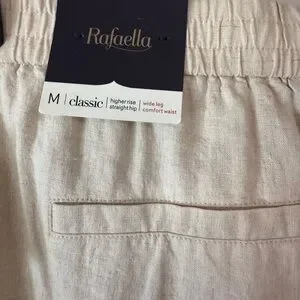 Rafaella Beige Classic Higher Rise Wide Leg Comfort Waist Linen Pants