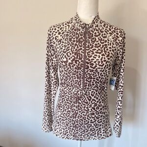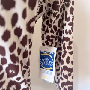 EUC J. Crew Brown Cream Leopard Rash guard Top Swim L Large UPF 50+