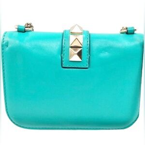 ✨🛍️ Valentino Garavani Teal Vitello Small Glam Lock Rockstud Bag