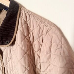 Lands' End Tan Quilted Jacket Corduroy Collar Snap Front XL