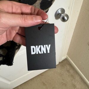 new with tags. Super soft and luxurious DKNY scarf. Polyester/rayon material. $68 retail value