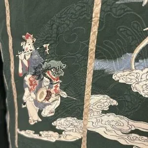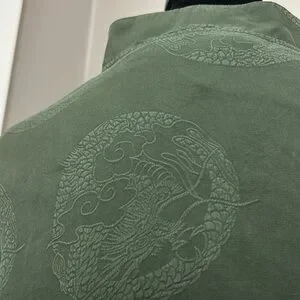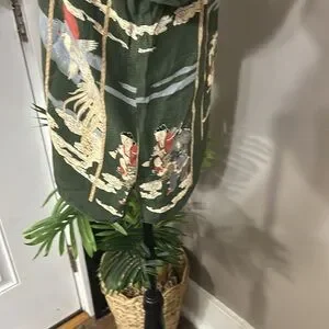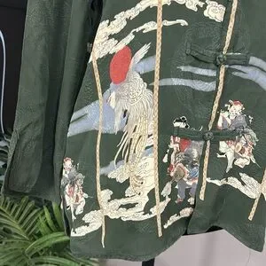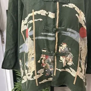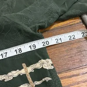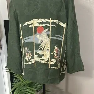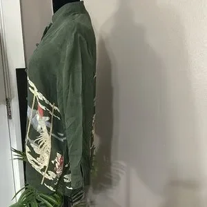 Citron Santa Monica Top Army Green Silk Asian Print Mandarin Collar Women’s M