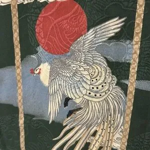 Citron Santa Monica Top Army Green 100% Silk with Asian Print. Mandarin Collar, button like front, and quarter length sleeves.