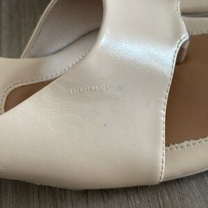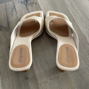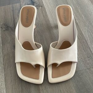 A curved design and a toe divider lend contemporary appeal to this mule lofted by a sculptural heel.
