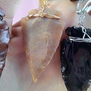 these vintage authentic handcrafted handmade arrowhead pendants are OMG stunningly amazingly gorgeous and breathtaking!! So unique.. so shiny! Nice and large stones om braided twisted silver chains! this sh*t is authentic AF!