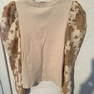 Brand new with tags blush/cream colored top. Bodice is stretchy and sleeves are lace with a puff style shoulder. Size medium. Never been worn. Smoke free home.