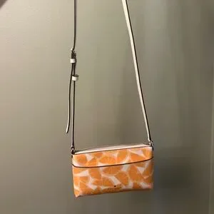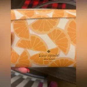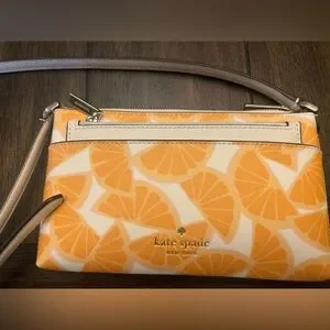 Kate Spade New York cross body. Orange citrus print. Included with the cream / white card case.