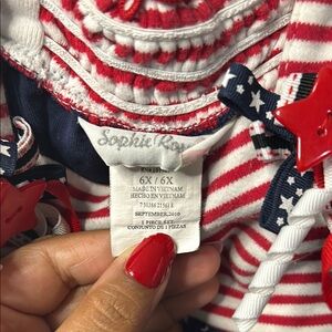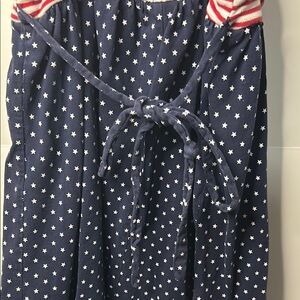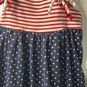 Charming navy polka dot dress with red stripes, perfect for any occasion. Comfortable and stylish for your little one.