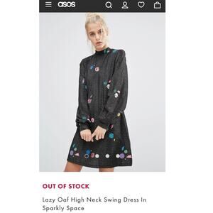 Lazy Oaf Sparkly Space Planets Black Glitter High Neck Swing Dress Long Sleeve S
