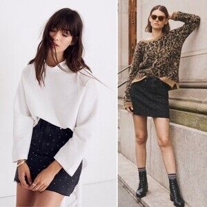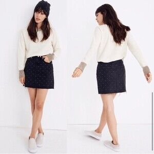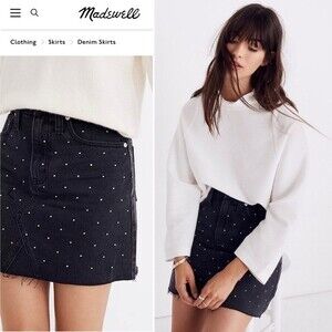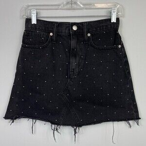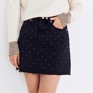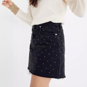 Madewell Rigid Denim A-Line Mini Skirt Metallic Dots Edition Black Jean 24 XS