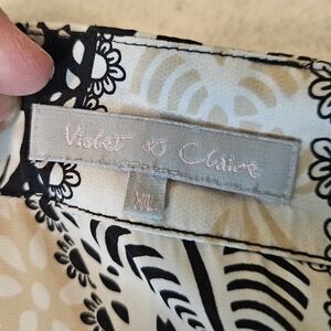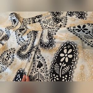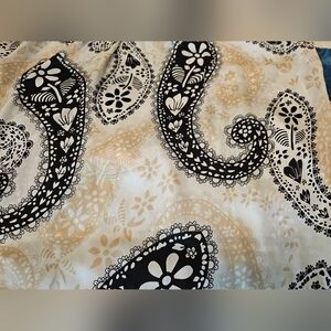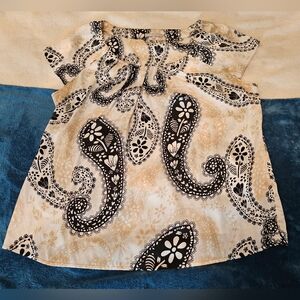 Violent & Claire XL Silky Cream, Tan & Black Paisley Print Round Neck Blouse