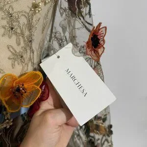 Brand New US 8 MARCHESA Embroidered Organza Floral Evening Gown