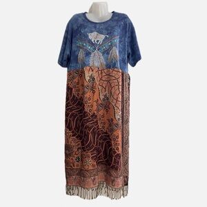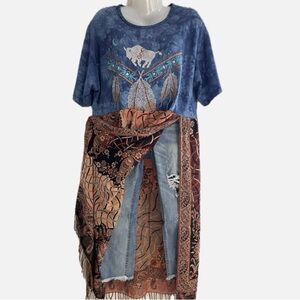 Upcycled boho maxi t-shirt dress.