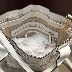 NWT- Beautiful woven Michael Kors leather tote with leather tassel. My closet clean out is your gain! Care card included. This is the larger purse (measurements in comments).