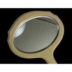 Vintage Pyralin Celluloid Hand Held Mirror Oval Vanity Mirror with Beveled Glass