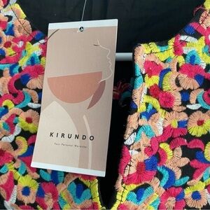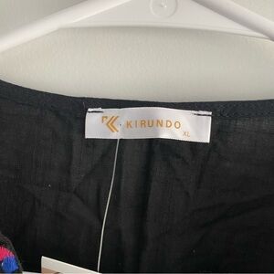 Women's Mini Dress Casual V Neck Floral Embroidery Ruffle Sleeveless KIRUNDO Black Size XL