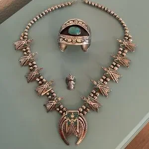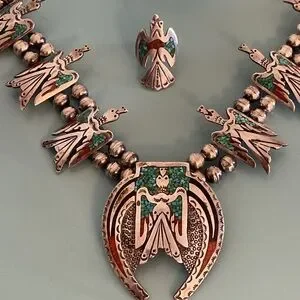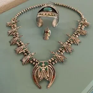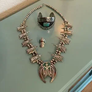 Silver Handmade Vintage Squash Blossom Necklace, Bracelet, Ring