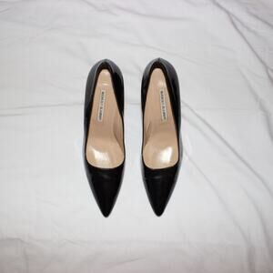 manolo blahnik black patent leather pointed toe classic pumps heels sandals