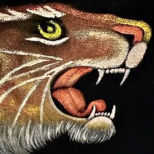 2 tigers only. Bought off wall. Enhance your space with this striking tiger wall art. Featuring bold brown and black tones, this piece adds a touch of wild elegance to any room.