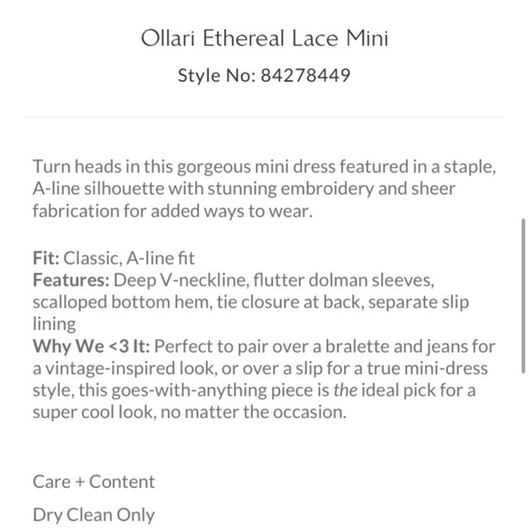 Free People Ollari Ethereal Lace Mini Dress. Brand new without tags, size small. $400 retail. See pics for more details. Line through label to prevent store returns.