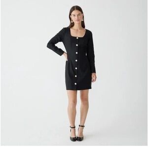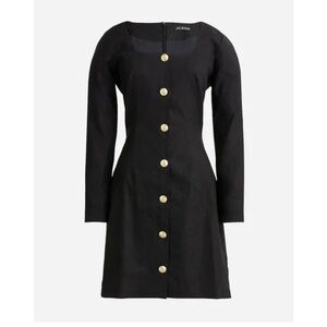 J Crew Long Sleeve Button Mini Dress Black Linen Blend Square Neck size 12