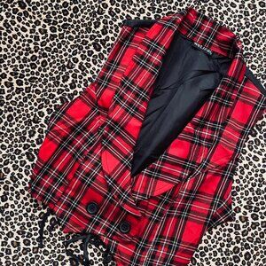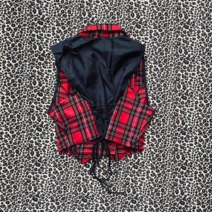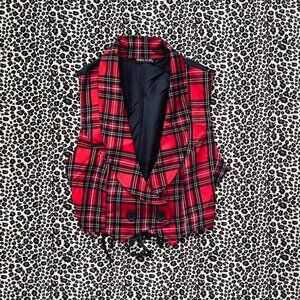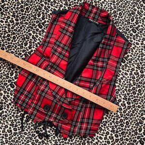 Early 2000s / y2k schoolgirl red plaid mini vest . Perfect for layering <333
