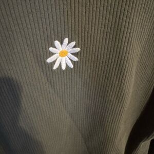 Wild Fable womens long sleeve shirt, green with embroidered flower on front, ribbed knit, xxl, preowned
