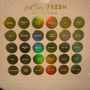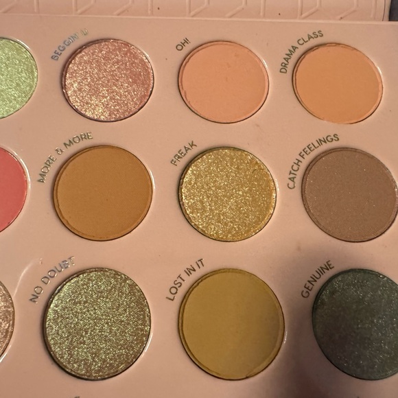 The shade “slick” has been touched. Not from actual use, but the shade got bumped from opening the palette. Has its sleeve and plastic protector.