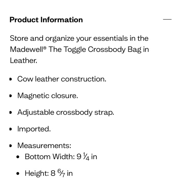 NWT Madewell The Toggle Crossbody Bag In Cherry Wood