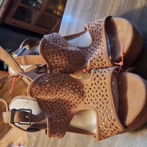 Women's Size 10M Brown Gianni Bini brown 5" wedge open toe shoes
