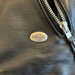 This women’s Harley Davidson leather jacket is heavy and in excellent preowned condition size small
