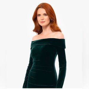 Beautiful dark green velvet evening gown perfect for a Christmas or New Years party. Originally purchased from Kohls, only worn once for a few hours. Runs tight, so I sized up, I would typically wear a 12/14.