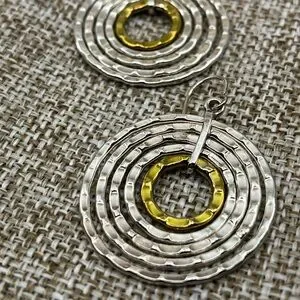 Part of my estate collection, these vintage Taxco Traditions sterling silver earrings were purchased in the early 2000s from QVC. Handcrafted in Mexico and stamped "925 II Mexico," they showcase intricate circular designs with a beautiful hammered texture and gold-tone accents at the center. Weighing 18.2 grams, these earrings measure approximately 1.25" in diameter and are perfect for both special occasions and everyday wear. They come with the original box, certificate, and velvet pouch, making them an excellent gift or collector’s piece.