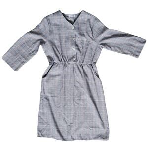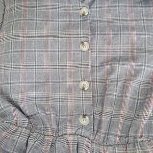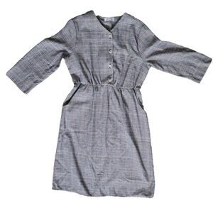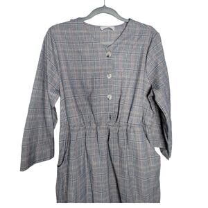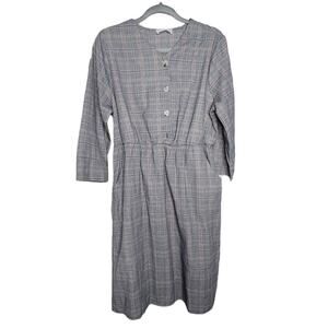Ces Femme Plaid Long Sleeve Button Front Gray/Red Plaid Dress Women Sz Large