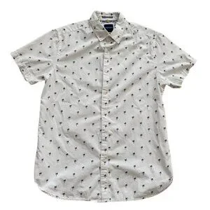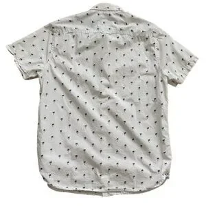 Palm tree fabric yellow stitching on the buttons