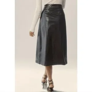 Anthropologie Mare Mare Black Faux Leather Button Front Midi Skirt
