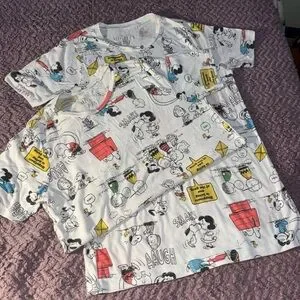 2 Mighty Fine T-shirts. Peanuts. Snoopy. Charlie Brown. White.